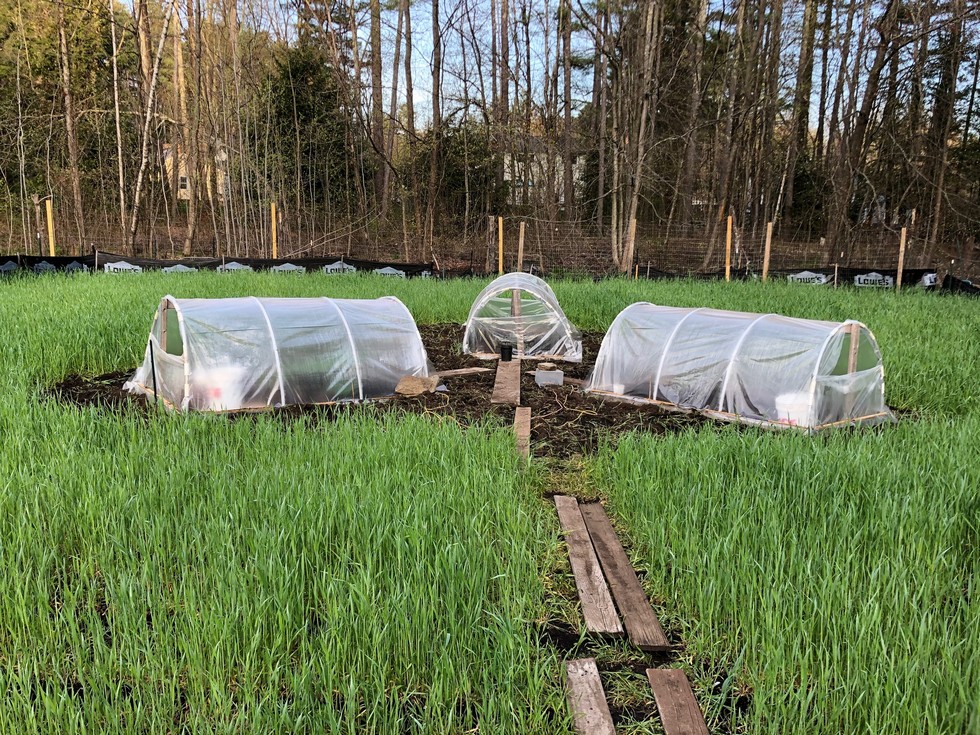 View of the patch. Winter rye is getting a little out of control.