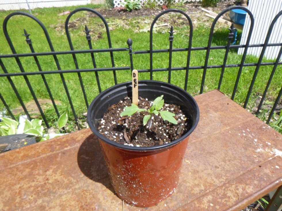 Deformed Porterhouse tomato plant year 2. I am hoping that the deformity continues to evolve into big megablooms.