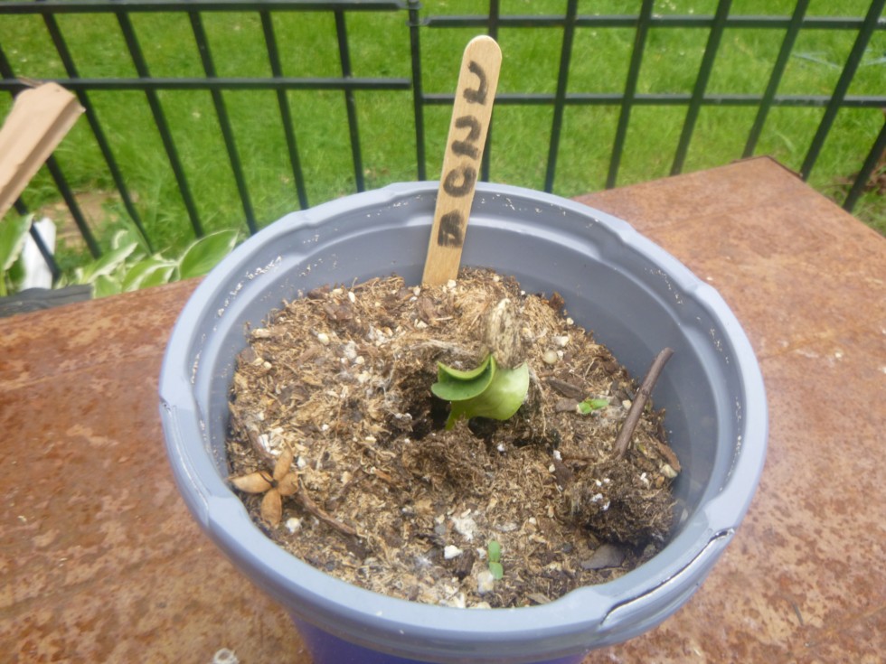 220 Baggs marrow seed germinating. The first 220 seed I started is probably a dud since it hasn't germinated.