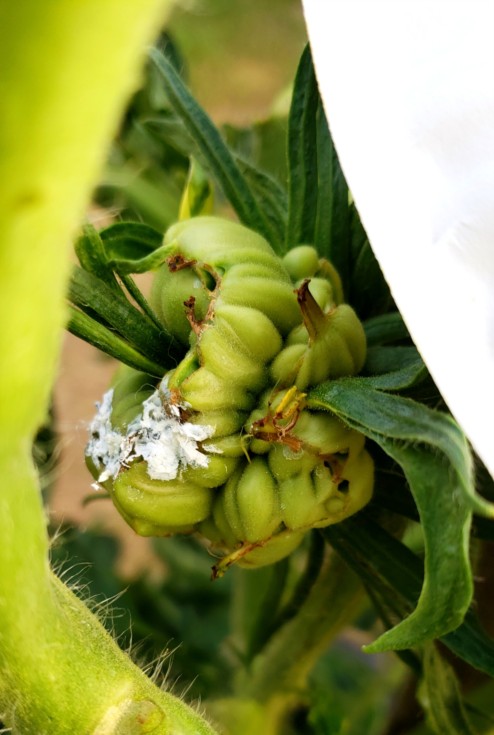 It was about now that I emergency Facebook spammed Rick Spaziani and Scott Marley. Both were very fast to reply (I love cell phones) and gave great advice. Rick, unfortunately I had no sulfur on deck so I had to roll with Scott's advice of making a paste out of calcarb and treating all questionable areas. I also sprayed some of the foliage with calcarb.