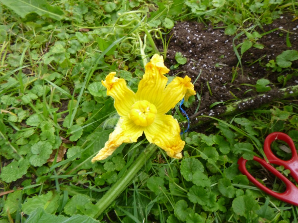 513 Webel Squash X Self at 14 feet on the main vine. I used 5 flowers to pollinate with. As many times as I've been tempted to pull this plant due to lack of progress, it comes through with something that keeps me from pulling it. This time a nice 5/6 lobe flower. The plant is big enough to support this pollination with 2 other vines that are 12 feet long and other vines starting to form.. Its supposed to be in the 70s this week so the pollination should take.