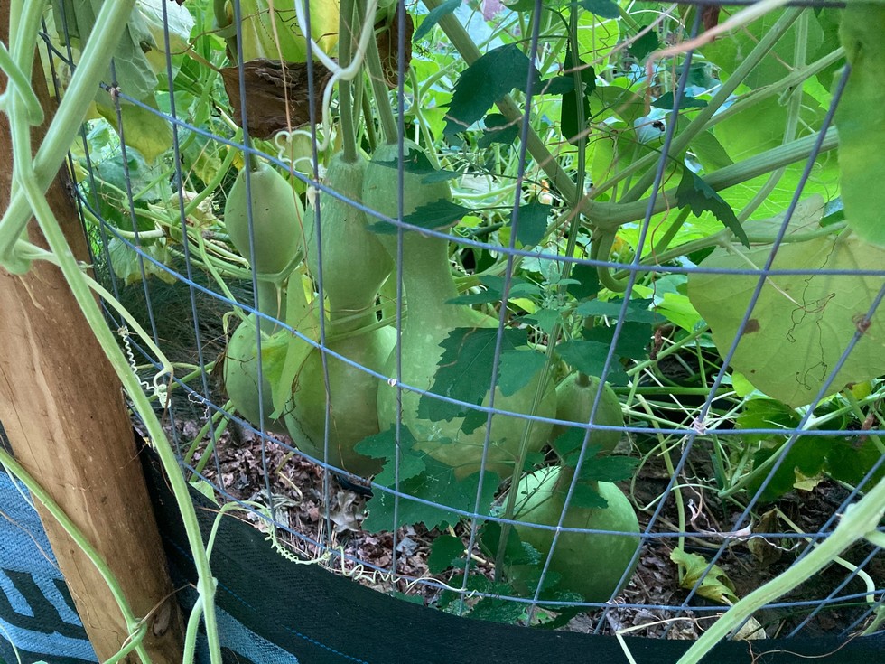 In case anyone has wondered what the wall of vines are that surround two sides of the pumpkin patch, we grow lots of bird house gourds,long handle dipper gourds and other types of gourds each year.