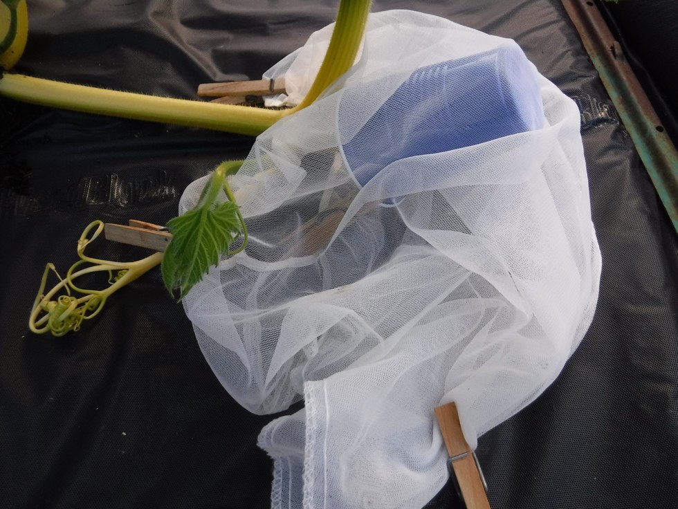 Day before pollination preparation and protection. When the entire season depends on a single flower every precaution is taken to help increase the odds of pollination and minimize the potential for damage.