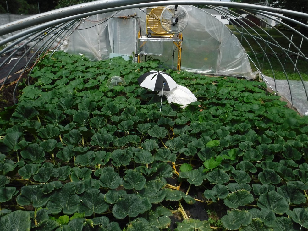 The area is about 32ft wide and 40ft long with the plant pruned in the traditional Christmas Tree / Box style with the pumpkin out about 18ft from the initial plant site.