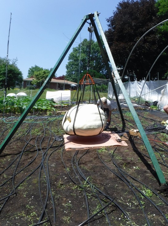 With most of the plant and structure now removed the tripod was set-up to get a weight on the pumpkin on an inline scale.