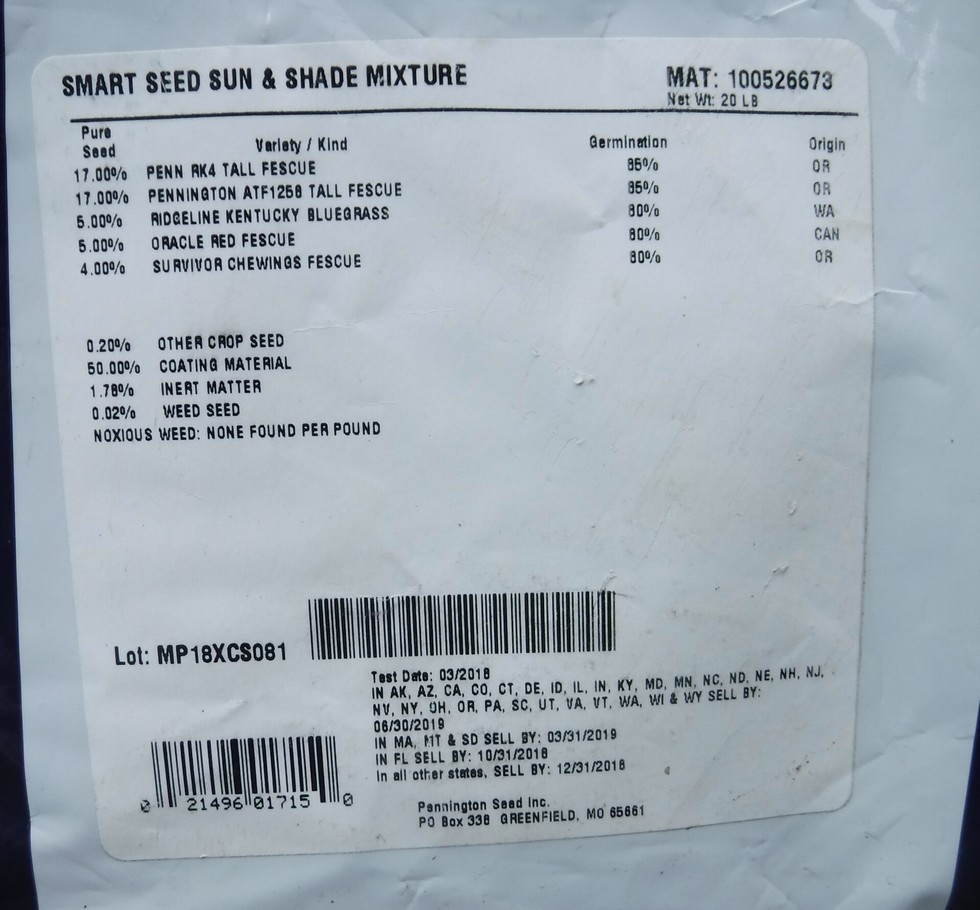 Since it seems the actual varieties of grass used can change here is the label to provide the specific blend used as the chosen cover crop.