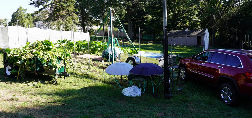 This image shows all of the supporting components to the great pumpkin lift process. Having a plan ahead of time helps and knowing how each of the different components will be used provide an organized lifting and loading process.