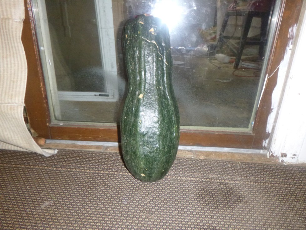 203 Fortey X Open marrow. 9.5 pounds. Learned a few lessons on why it was so small. I hope seeds will be there when I open it up tomorrow. It grew in the middle of the plant so I am probably sure it is a 203 Forety X Self pollination. There were no other marrow plants within 30 feet of it. The 205 Wursten field pumpkin was next to it if it turns out to be a marrowkin next year.