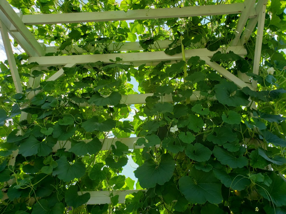 WR long gourd is taking off, but the plant is going to get a serious pruning today.