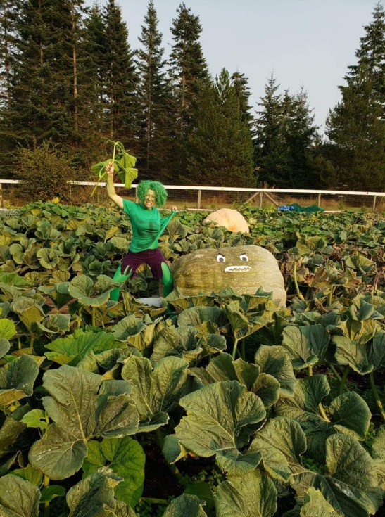 Today there was an epic battle in the pumpkin patch between The Incredible Hulk of Awesomeness and She-Hulk! It was scary and the two fought to the death. Vines were flying, there was roaring, and the Earth shook with each furious, pounding blow! The winner, of course, was The Incredible Hulk of Awesomeness, who will receive its glory at the Bauman's weigh-off in Oregon on Saturday!
