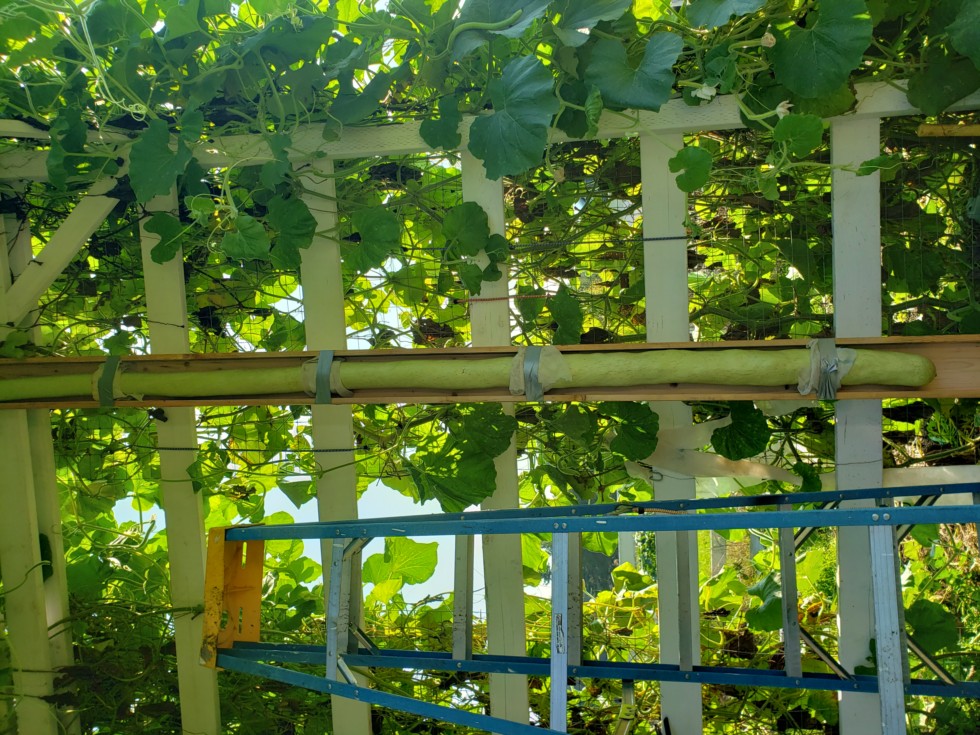 Harvest day! I'll take the WR long gourd to Baumans. I'm anticipating a new state record!