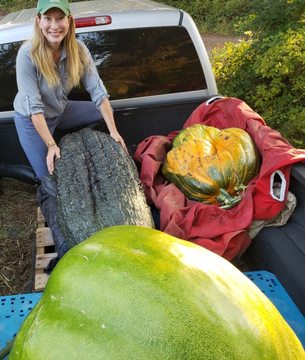 More giants in the back of the truck! I'm expecting some state records to fall! Also....miracle of miracles: one field pumpkin managed to NOT split! I think we're going to make a good run at the Master Gardener award with this load of awesomeness!