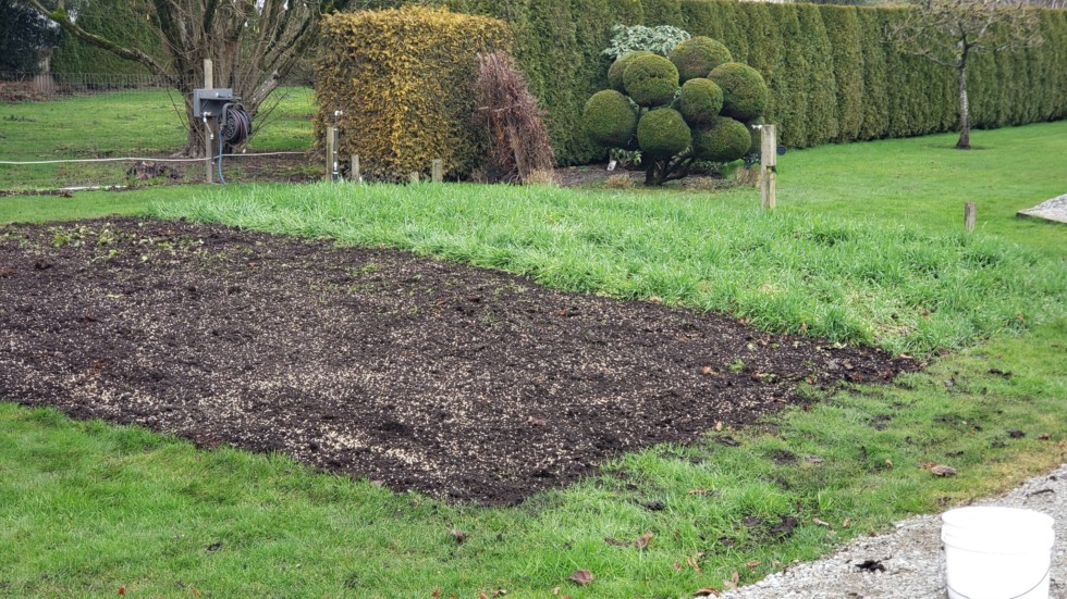 Rye cover was sowed last October on half of the veggie garden. Rye cover sowed today on the other half where the carrots were harvested.