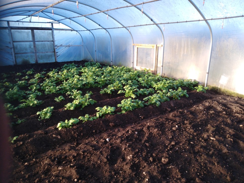 I started pumpkin seeds this evening. 12 seeds went in to 3 litre pots and are in the propagators at room temperature. I've never felt so relaxed about growing a pumpkin, I didn't even bother to sand seeds :D. The plan is to start one plant off at each end and they'll meet in the middle, but I'll still have the option of thinning to one larger plant if one of the plants looks to be a runt. A picture of the tunnel taken last weekend before the frost touched the potato plants, which will be taken out before the pumpkins require the space if they're ready or not. I've now got side doors (one each side) in the middle of the tunnel which will enable me to get around the plants easier.