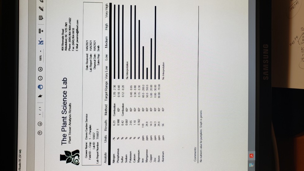 This is my tissue test done on the Chan 1379. My lab used both the petiole and the leaf. Apparently there is a controversy between using the petiole, the leaf or both. Confusing! I gave the plant some Mn and B. Interestingly, this is the first bit of anything that I have given my plants since transplanting on May 3rd. These are my largest plants I've ever grown at this early date. I believe that the Langley estimator really did the job and balanced the soil so well that I didn't need to add anything.