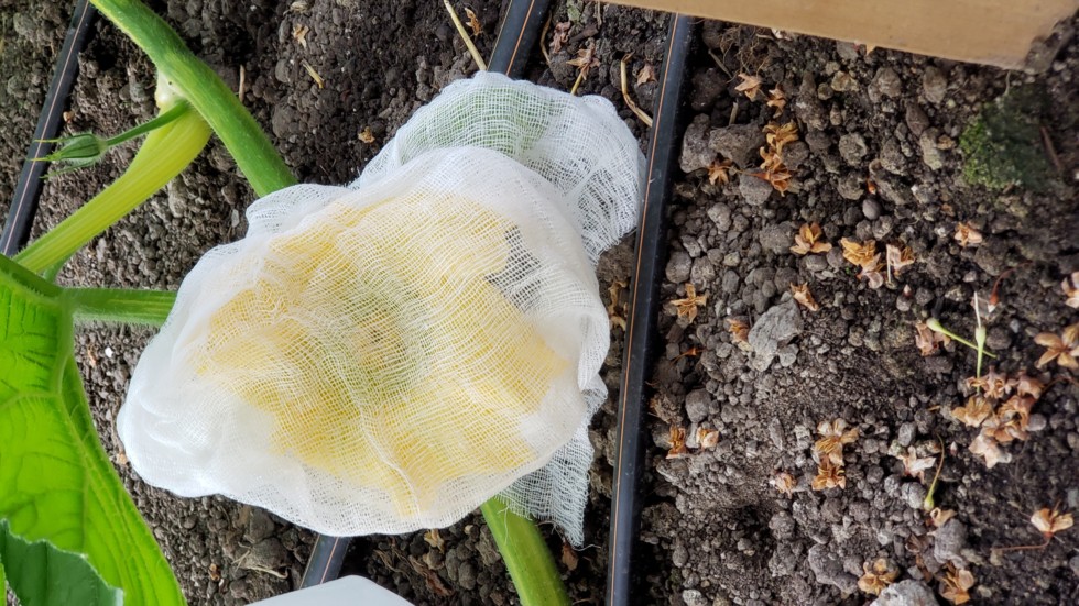 Usually I tie all the petals together after pollination. With this flower I tried a less invasive method by just covering with cheese cloth. fingers crossed !