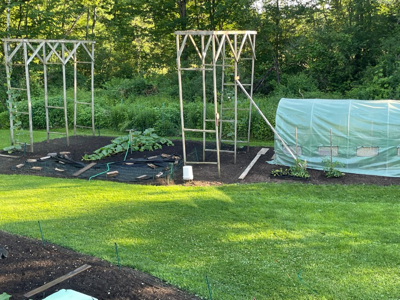 Overall, the pumpkins are growing well along with the long gourds and tomatoes.