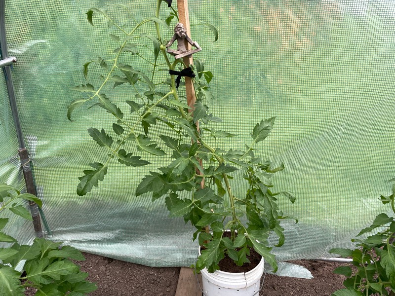 The 5 gallon bucket tomato has a pollination. Let�s see if we can get one to the scale this year.