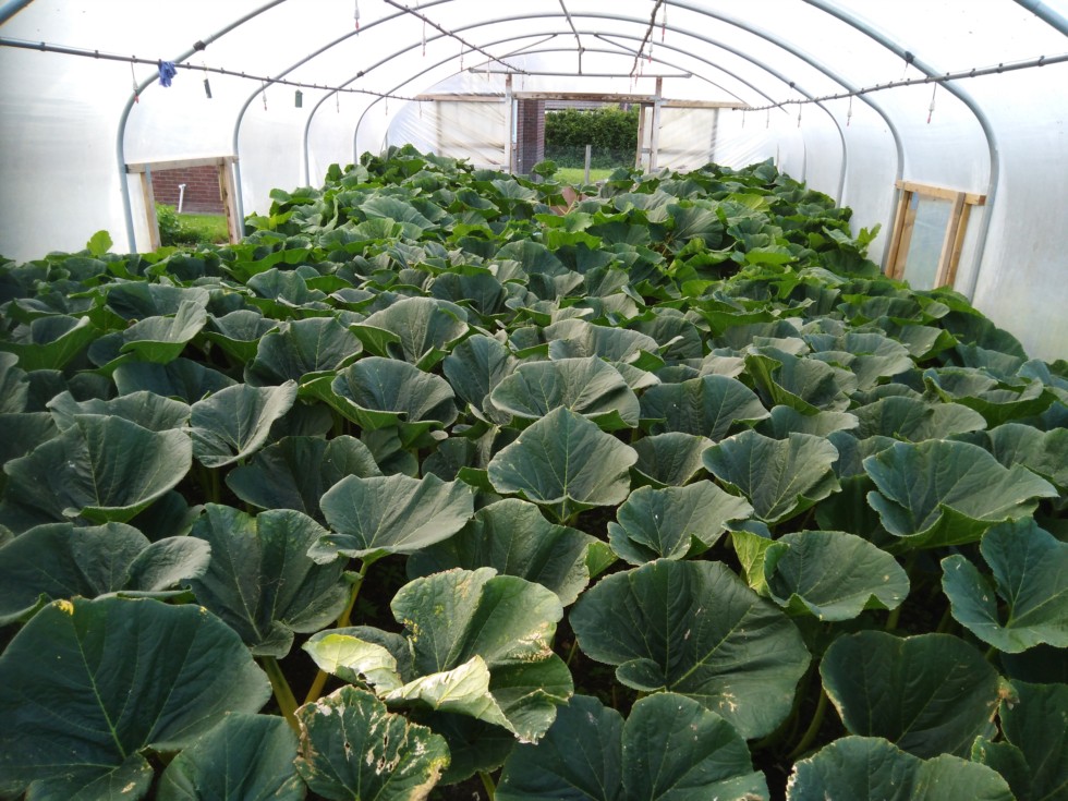 Pumpkin plants have now filled the tunnel and from here everything looks good