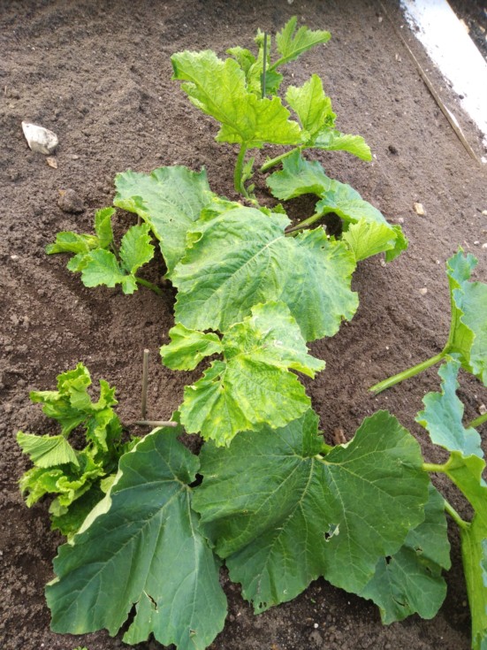 The only problem with the marrows right now is this plant, I'm not sure but I think this is some sort of virus, maybe mosaic. If it doesn't pick up soon I'll cull it.