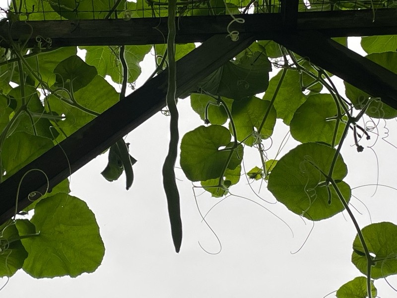Here is our longest so far on one of the 146 LeBlanc long gourd plants. It is roughly 3 feet long.