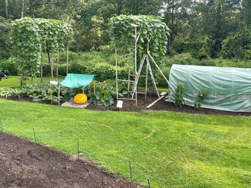 The old patch seems to be holding its own and the fungal issues have slowed a bit. Need to work it harder then we want as we need at least one lawn pumpkin this fall.