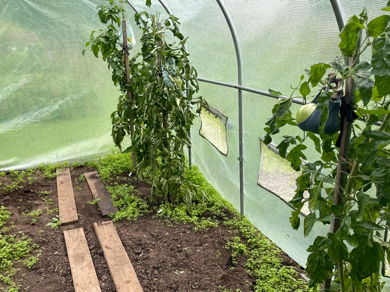 Meanwhile back in the patch, our tomato hut is looking slim. A number of tomatoes flashed early. I have weighed them and documented just in case I need to use one for tomato team. We are hoping one of the three left will be bigger then those though.