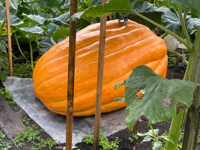 Not the shape we were hoping for but all our pumpkins in new patch were long this year. Hard to complain about the color though!