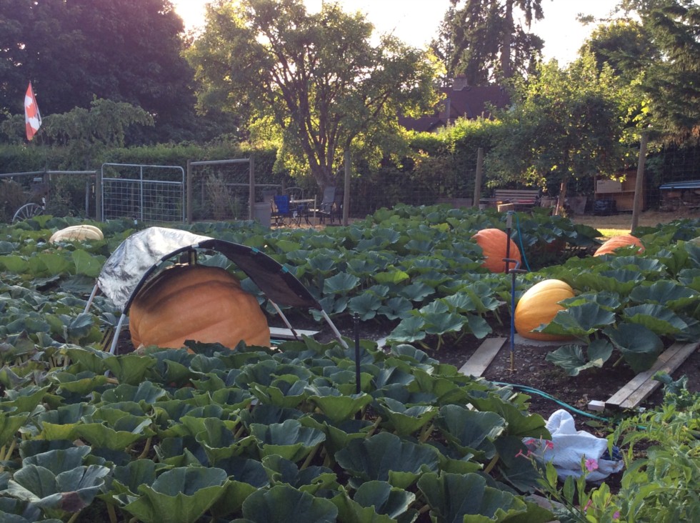 Day 60 for the 2114 Wallace in front and harvest day for the lower 2469 Daletas in a few days. At 370 inches OTT, we�ve got about a month to go till the big Krause Berry Farm and Estate Winery Contest. Might not catch Richmond Dave and I hear footsteps from Jeff P and his nice pumpkin in North Vancouver. Seems that not many growers in British Columbia post diaries any longer, Facebook and Instagram have lured them away.