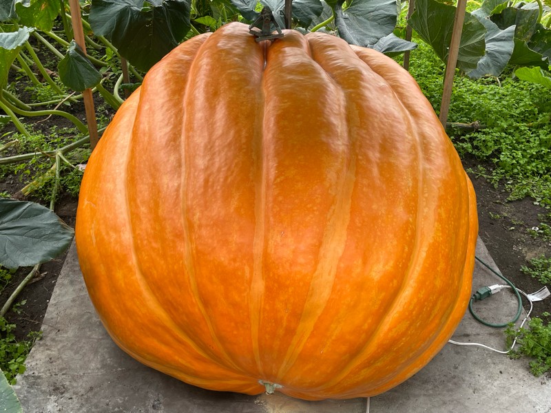 Our only pumpkin left is our 1552 Young. It is still slowly growing and is 62 days old and has an OTT of 367 inches. Not the shape we were hoping for but has a very nice dark orange color with smooth skin. As we are looking to create perfect pumpkins we understand that it is subjective. Howard Dill rated pumpkins in our opinion need to have the best combination of nice orange color, round shape and smooth non cantaloupe skin. People talk about pumpkins glowing and I feel it is the smooth skin that really makes a pumpkin color pop.