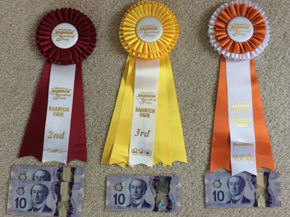 2nd place ribbon and $20 cash for the 698 lb pumpkin and 3rd place ribbon and $10 cash for 3rd place and the orange ribbon and $10 cash for most beautiful pumpkin with the 262 lb orange beauty.