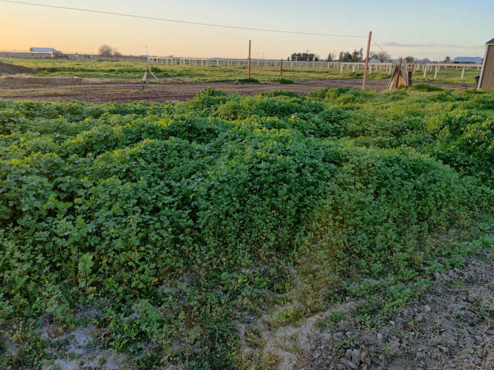 Cover crop on the other side is doing well. I'd let it grow longer, but I've gotta put down gypsum now because my calcium is very low. Gonna cut it down tomorrow and get to work.