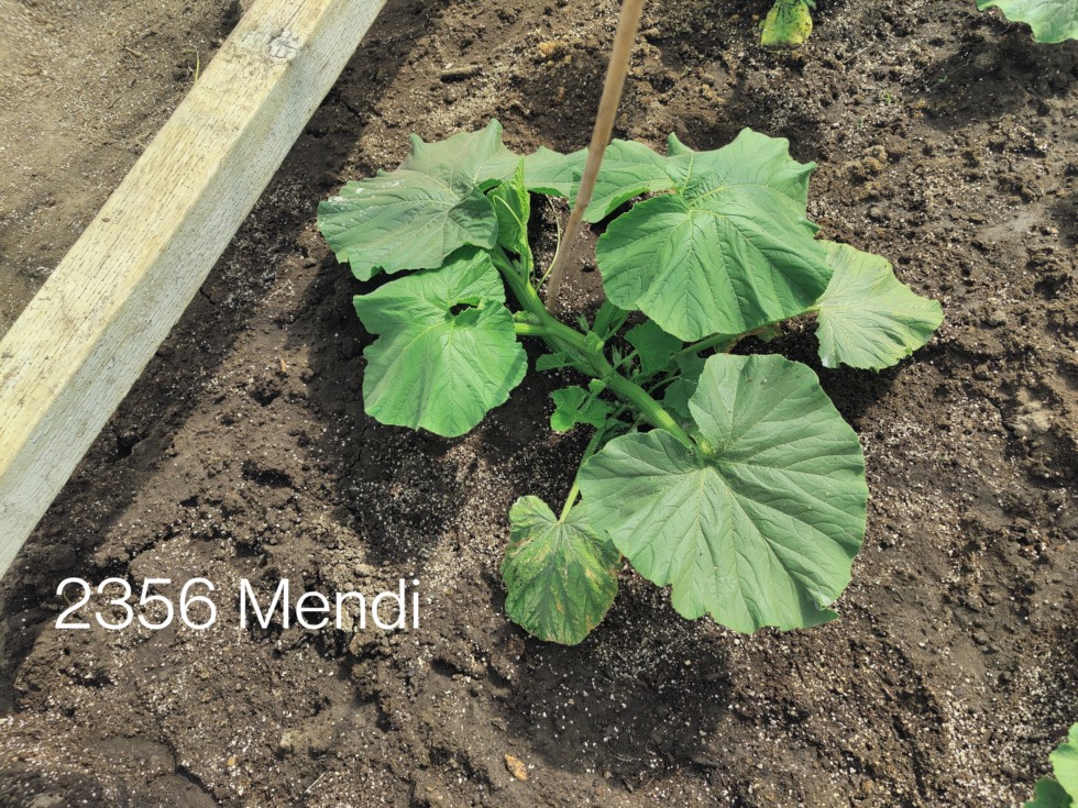 2356 Mendi. Not my favorite plant, entirely my fault. It was a bit ahead of the others, so I ended up repotting it. The transplant was less that ideal. I would say it toppled into the hole, as opposed to a more graceful landing as I tried to extricate it from the grow bag. I have backups, we'll see what happens.