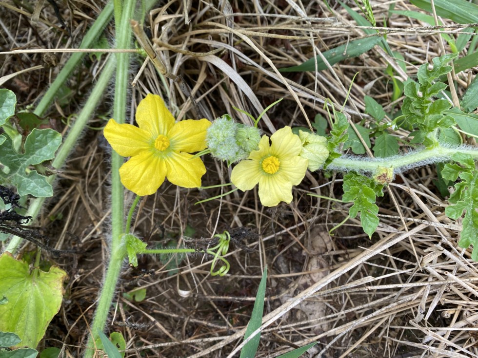 It is hard to tell the difference between a Carolina strong back and a watermelon. The only way I can tell the difference is by the flower color. The lighter colored flower is the watermelon and the darker one is the strongback