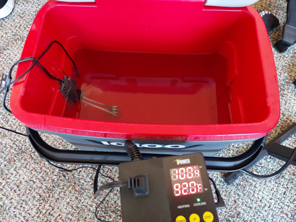 Filled up with warm water, temp probe just below the water line near the heating element.
