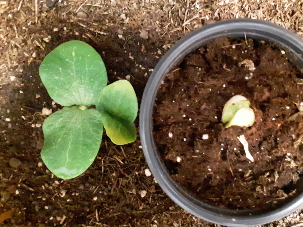 These were planted at the same time, (the 11 year old seed was actually presoaked ahead of the other two)... but even so its lagging way behind... this is why old seeds can be started a full week ahead of new seeds for approximately equal planting date! They can be very slow out of the gate.