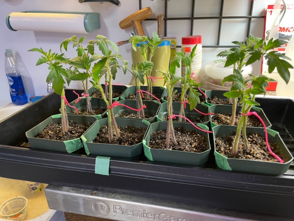Here are some of my tomatoes in the midst of approach grafting. It�s a mix of Giants & heirlooms.