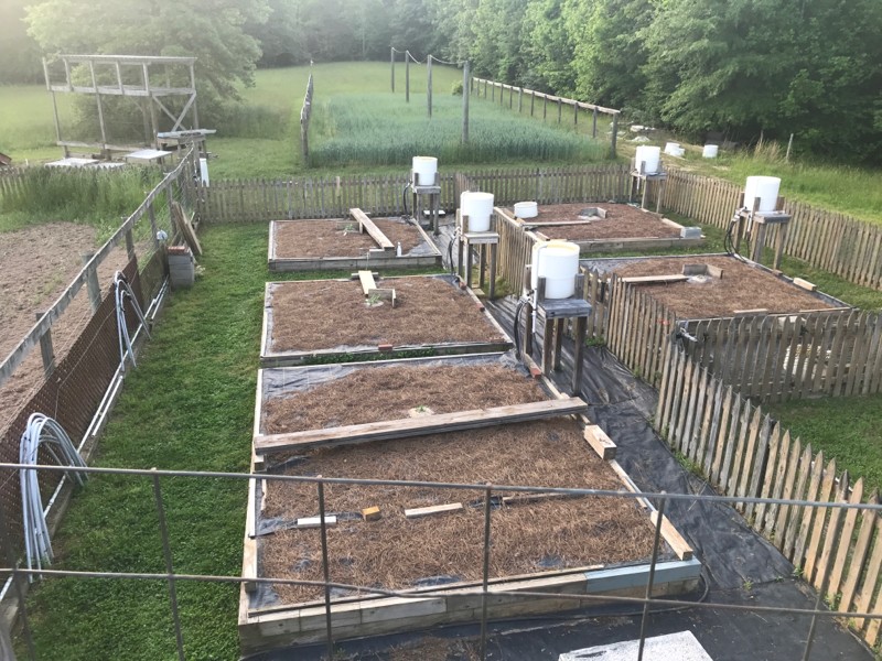 The melon plants are hanging in there. They have not seen 80 but for one day since I put them out. I can�t complain if we weren�t missing the rain I would have lost them all probably. I replaced a couple with backups. Blue sky�s are a coming