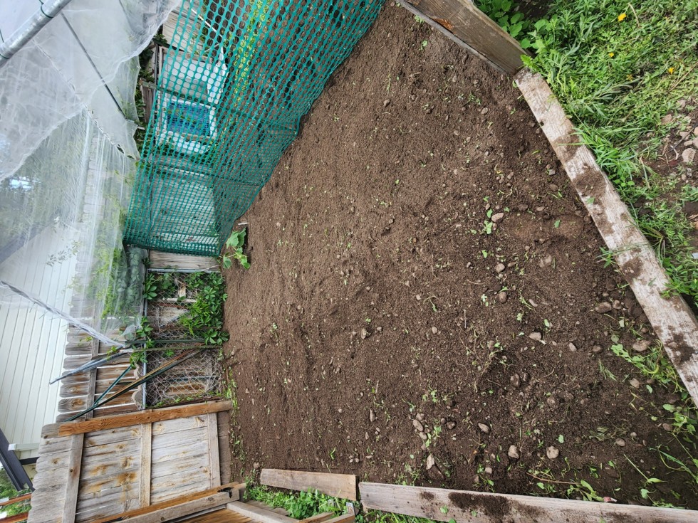 150 square foot patch is finally finished. 10 feet wide by 15 feet long. 1952.5 Kogut is the plant. Plant will be grown diagonally across the patch and the pumpkin will be set in the corner near the gate.