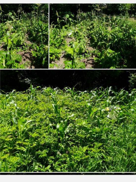 Good companions don't fight, cont'd: Chard and corn, potatoes and corn.