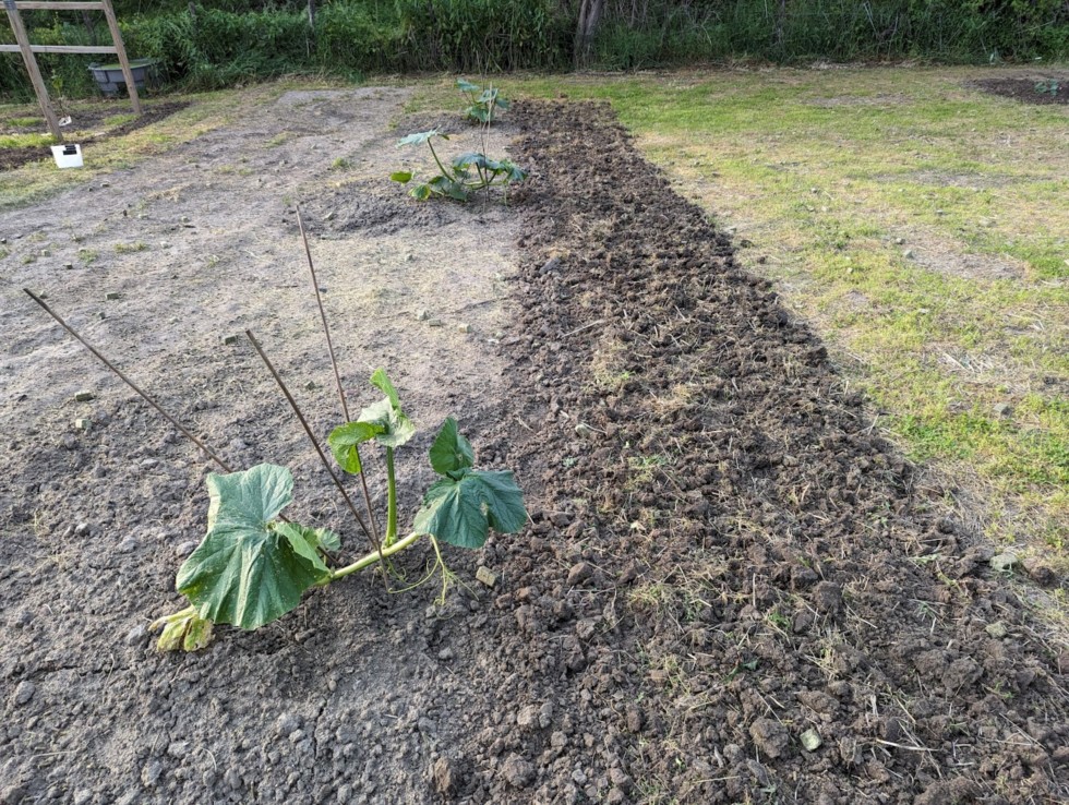 Seems like about the time I get close on getting caught up with the diary, fall a few weeks behind again. AG patch looks a little ragged after the beetle attack, especially the 2517 Haist, but they're starting to get some replacement leaves. There was also a discussion a little while back about plants growing straight up instead of laying down. These plants wanted to do that as well. From past experience seems like when my plants spend a little extra time in pots in the greenhouse, they tend to do this. Think the plant wants to grow upward instead of sideways in that situation and the alignment of the vine gets slightly off. By rotating the vine to the side slightly seems to realign and the vine starts dropping fairly quickly. These were turned slightly earlier in the day and by evening they were well on their way down to the ground.
