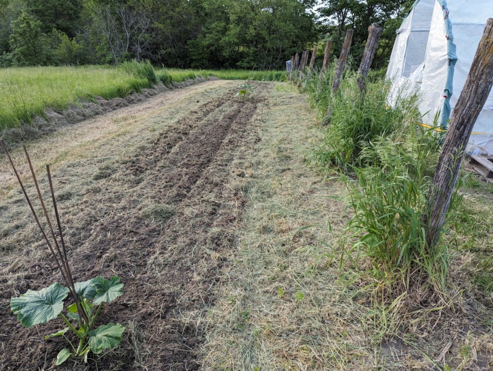 Going to try and advance some squash x AG hybrids another generation along with these plants. They're not going to get much room or care. Goal is to get something in the 200-300 lb range and there should be enough nutrients in the ground for that. Shown are the 1133 Yohe, 1326.5 Young/Rhodes, and far in the background is the 1028 Mace. Had also planned to grow the 601 Mace but two germination attempts failed. The Young/Rhodes isn't a hybrid, but a 2145.5 McMullen x Self that exhibited as a squash so curious what it will become as well. All will be crossed with the 2030 Tobeck unless the 1326.5 looks like a pumpkin. Might cross it with something else if that's the case.