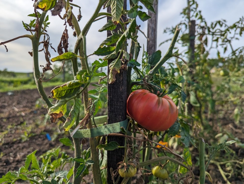 Picked the first tomato of the year from one of the early volunteer plants. First one is always a treat, then by the end of the year I'm thinking what am I going to do with all these tomatoes, lol