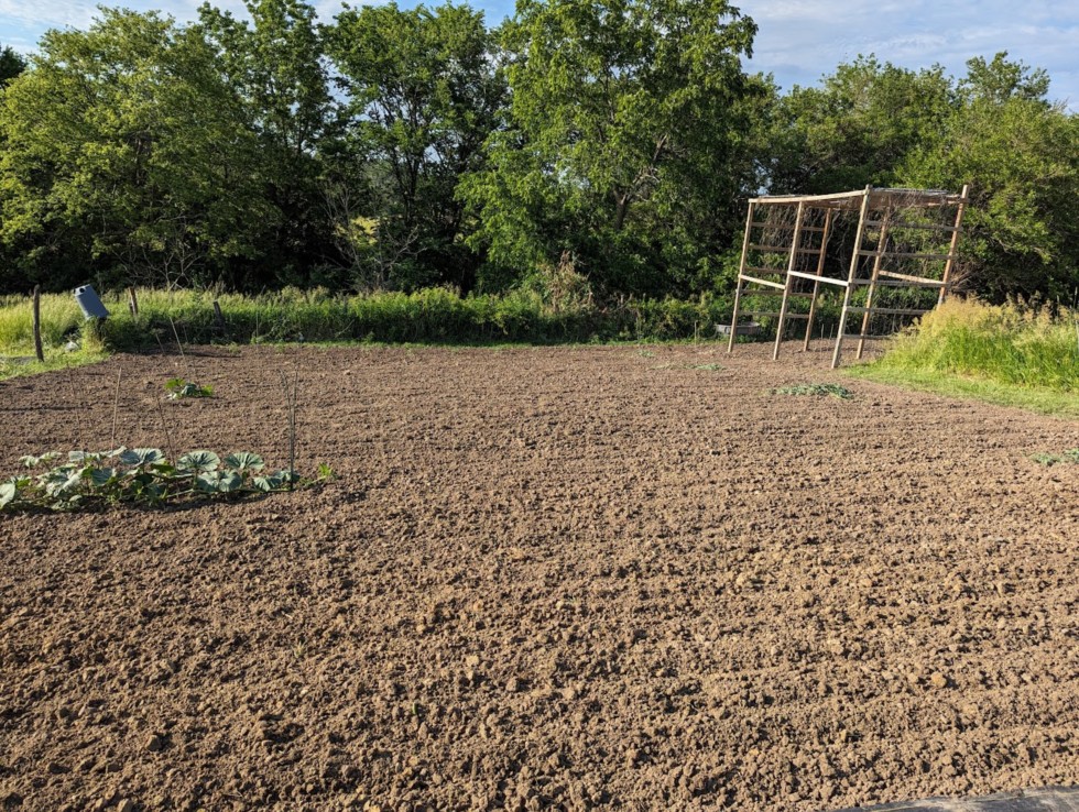This patch has the Tobeck squash, Caspers FP, first round of competition melons and the giant tomatoes at the bottom of the patch. Seeing some babies show up on a few of the melon plants. Although the plants are a little small may try pollinating a couple to see what happens.