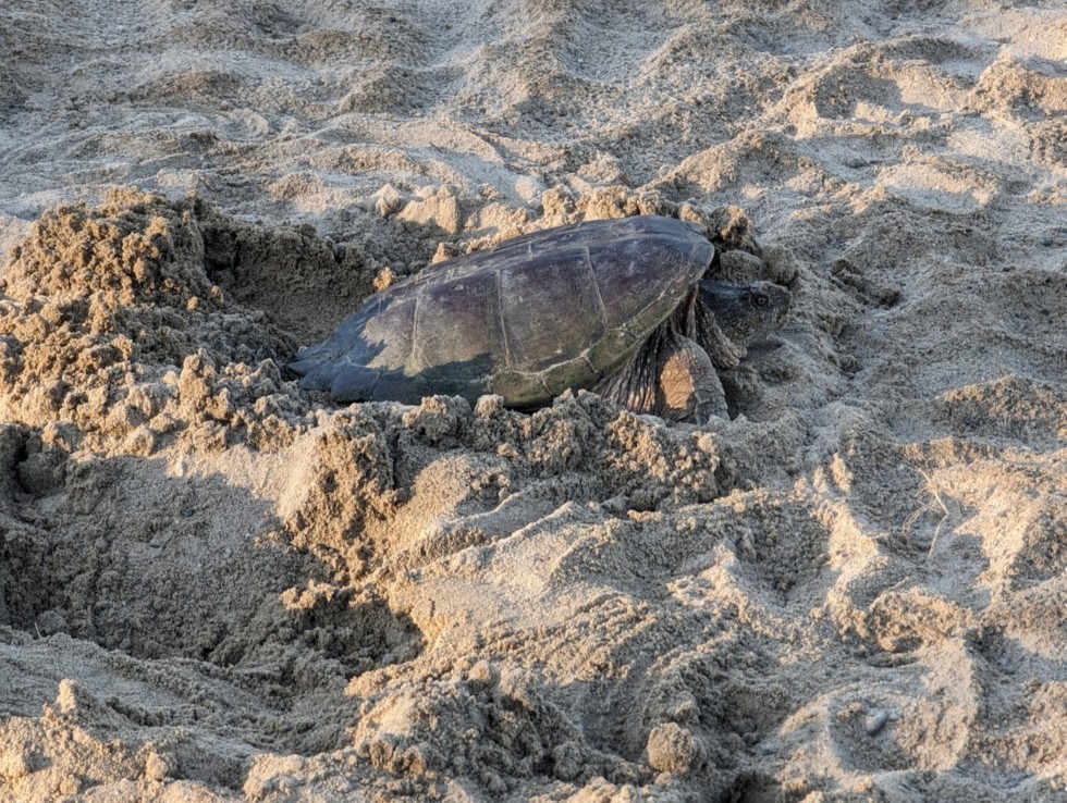Snapping turtle laying its eggs on the sand volleyball court at the hotel we stayed at in Dryden. Never seen so many turtles-painted and snappers- on the road on the way up between Fort Frances and Dryden. Their egg laying season is about a month behind ours in Iowa it appears.
