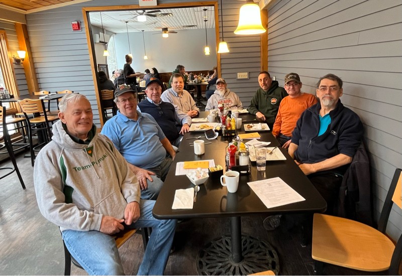 Some of the morning chat crew got together this morning in Springfield, VT. We swapped stories and seeds and ate a great breakfast. Bart, Lloyd, John, Wilbur, Norm, Gene, me and Chris.