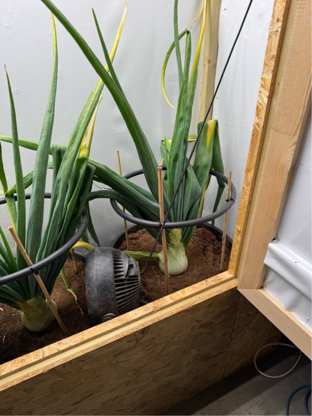 The onions are doing well for my first year back although I would like to know why I have some leaves yellowing. My goal is to get them to 32 inches or there about by the end of April. At the moment they average just over 16 inches circumference