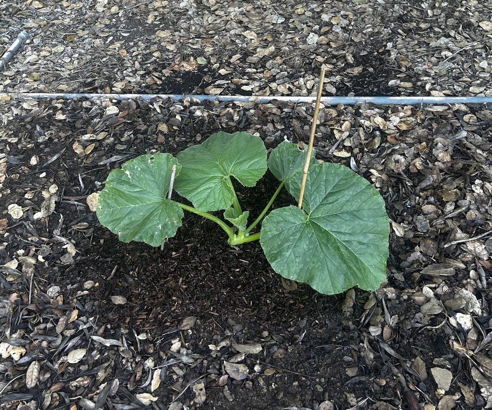 Never Say Die - Found this volunteer today in an area where I poured the pumpkin soup I removed from Tweedledee. I gave Tweedledee to a local non-profit for a guess-the-weight fundraiser. When I went to claim her, she was basically a large bowl of rotten soup. I scooped the soup into two five-gallon buckets and dumped it at this spot. Maybe I really didn't need to buy all those auction seeds...