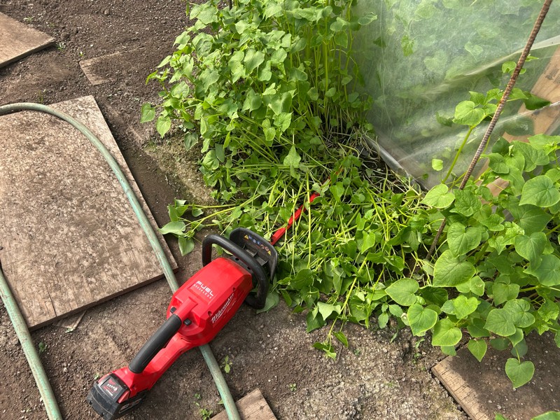 I have been trying to figure out how to cut my cover crop in front of my vines as they grow out without disturbing the roots. I was just walking through the garage looking for another extension chord and I saw my wife's favorite tool. It is a battery powered hedge clipper that gets used about once a year, it is now officially my cover crop cultivator! Best of all, my wife will never even know that I am using it! This is even better than her kitchen utensils!