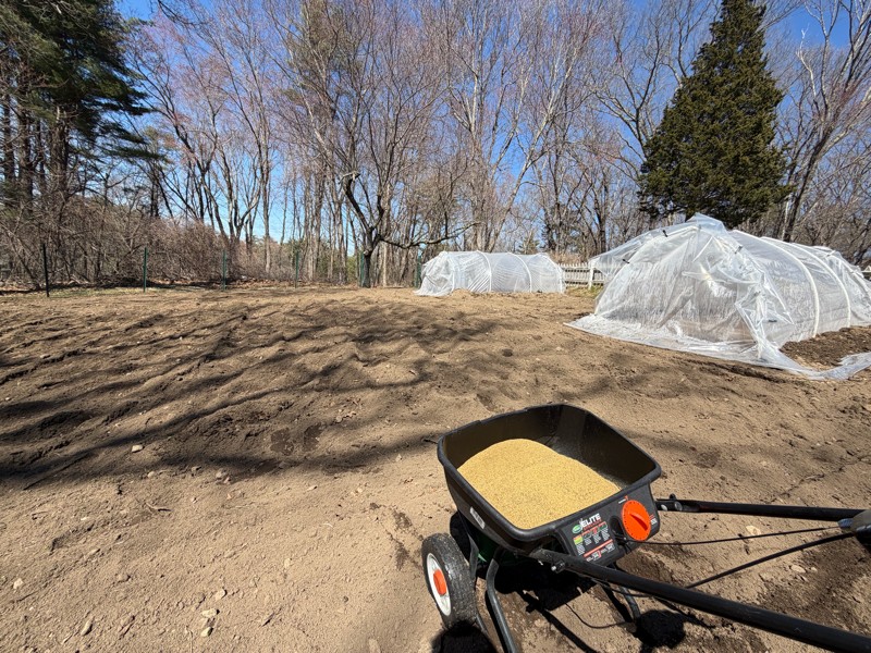 A very busy day ahead in the patch. Mustard meal ready to go in and covering the entire patch with plastic to hopefully suppress my disease even more than just the oxidate drenches